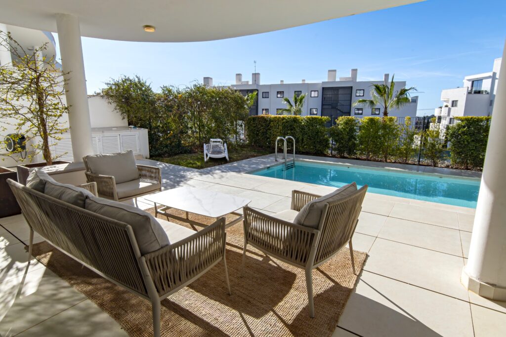 Con 149 m2 de terraza y piscina privada de 11 m2 calefaccionada te sentirás en un estado de relajación ideal. Se vende totalmente amueblado. Situado en una urbanización cerrada con seguridad 24 horas, este hogar ofrece un diseño moderno y todas las comodidades que puedas imaginar. Además, tendrás acceso directo al prestigioso Club Deportivo Higuerón Resort del Hotel Curio by Hilton, donde podrás disfrutar de actividades como pádel, tenis, gimnasio, spa y más. Relájate en los jardines aromáticos rodeados de olivos y higueras, o date un chapuzón en la piscina comunitaria. Este piso en la planta baja, con orientación sur y oeste, incluye dos plazas de garaje privadas y trastero. Con piso radiante en toda la vivienda, calefacción y aire acondicionado en Aerotermia, es perfecto para cualquier estación del año. ¡No dejes pasar esta oportunidad única de vivir en un entorno de lujo!